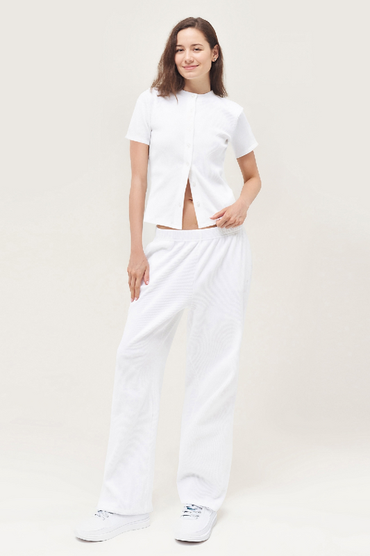 Casual Partial Button Slim Top & Wide Leg Trousers Co-ord