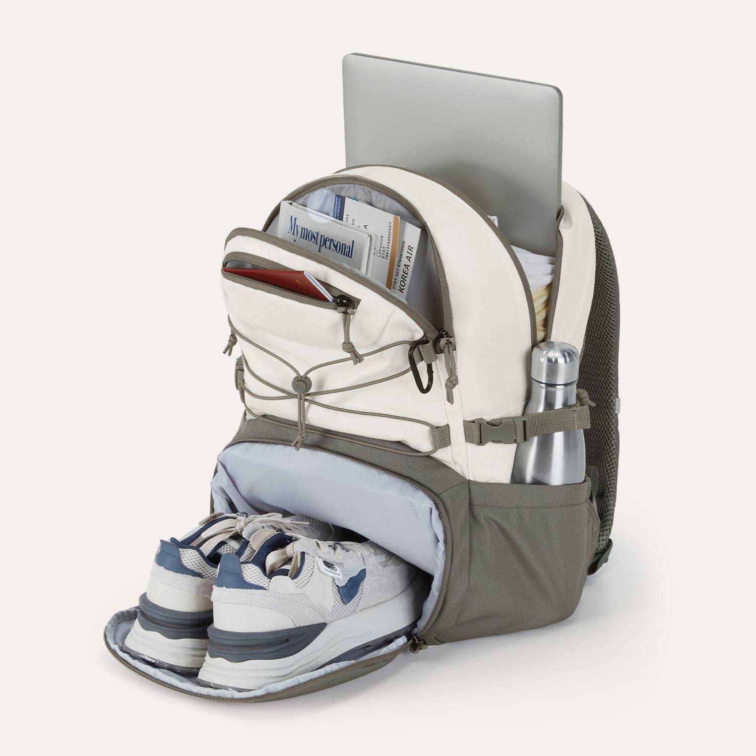 - Bottom Shoe Compartment: Keeps shoes separate and protected.