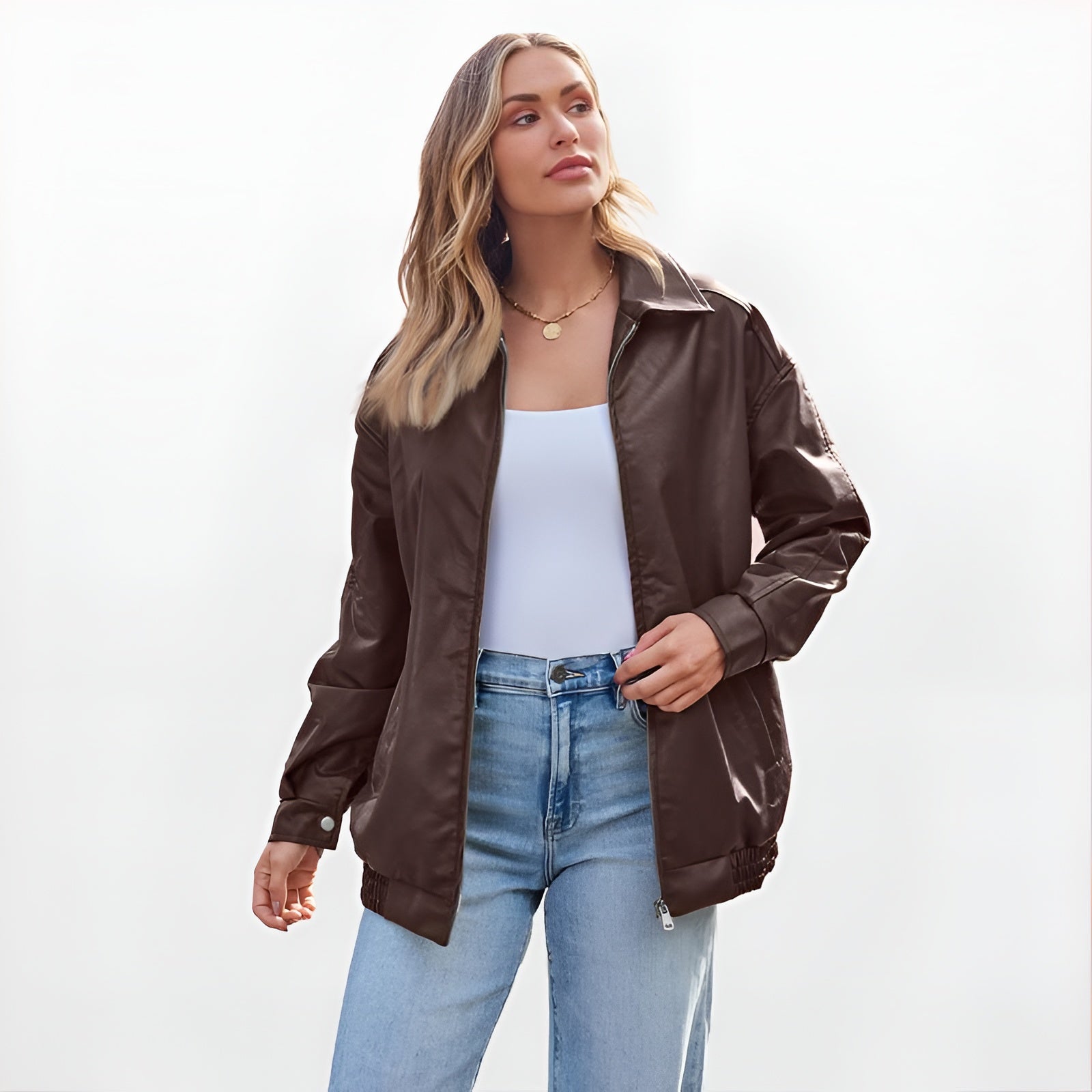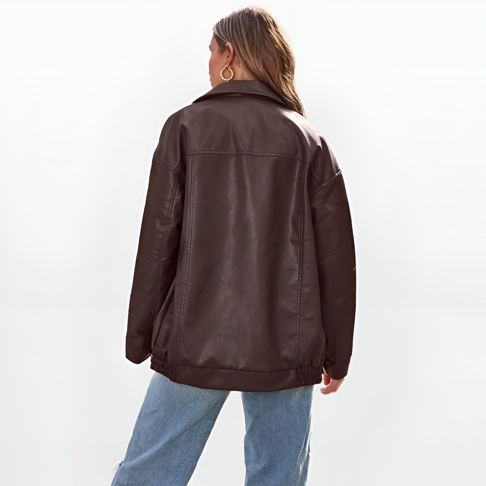 Own every moment with the Alore Rebel Oversized Faux Leather Jacket — a bold statement piece that captures the essence of modern edge and timeless confidence.