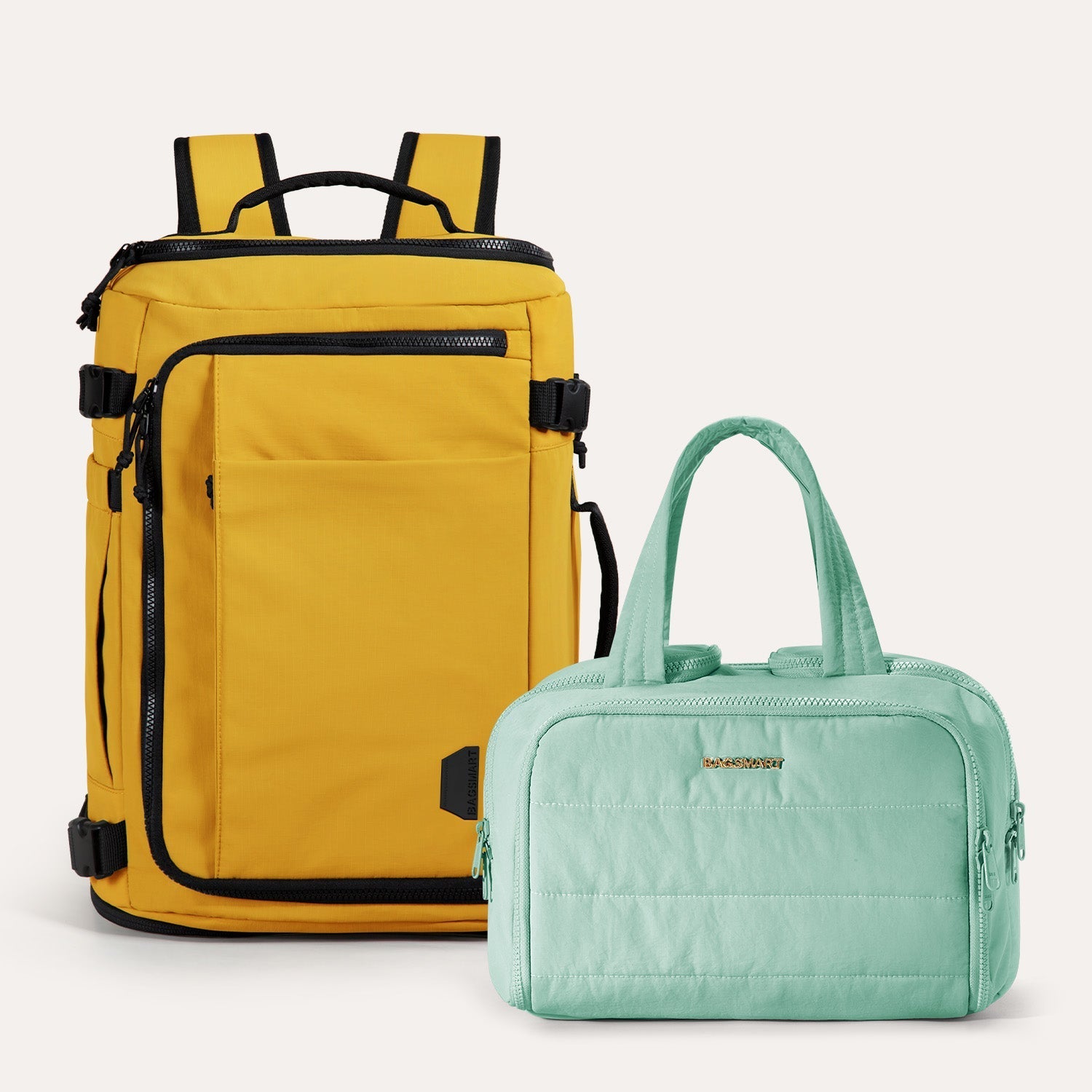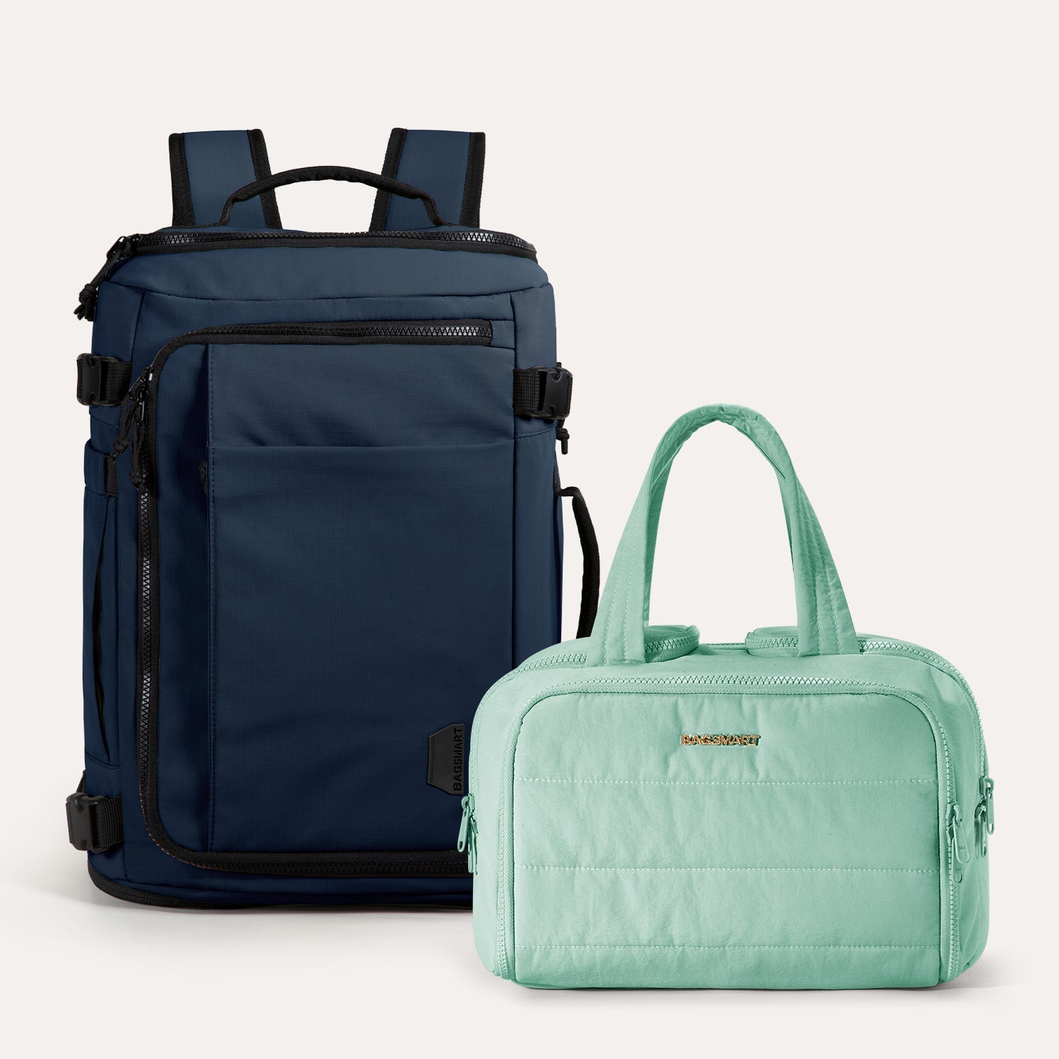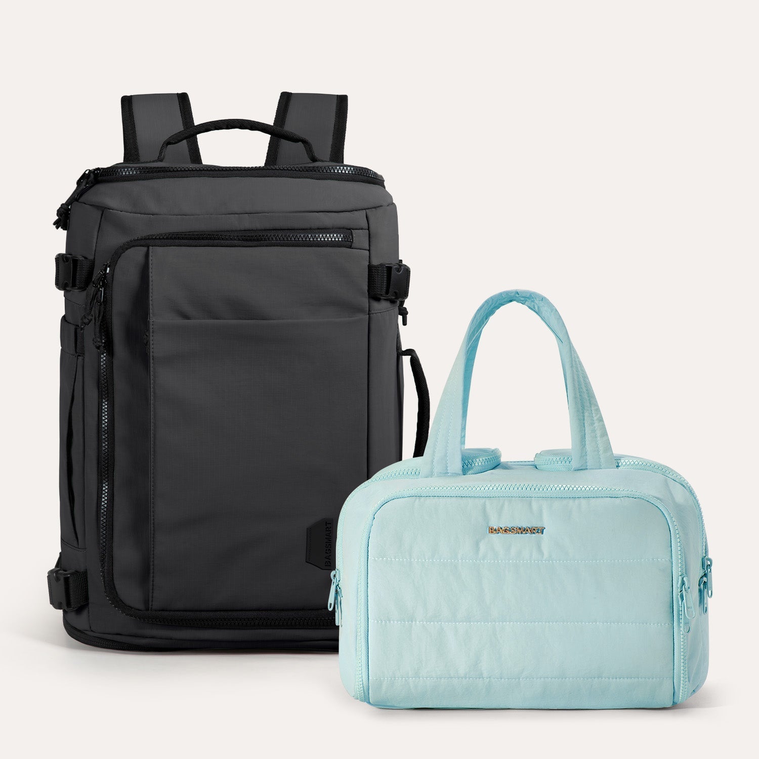 Our Blast & Spacesaver Set is designed to simplify and enhance your travel experience. This set includes the Blast Quick Access Carry On Travel Backpack and the Zora Spacesaver 4-in-1 Puffy Multi-Functional Toiletry Bag, crafted to meet all your travel needs.