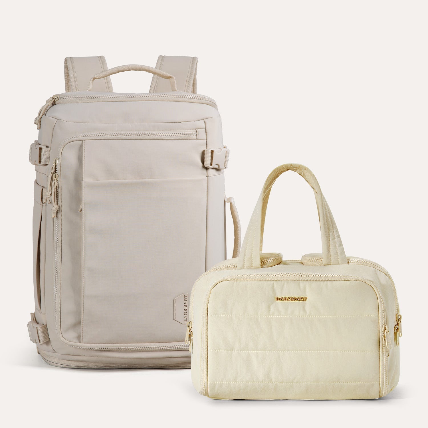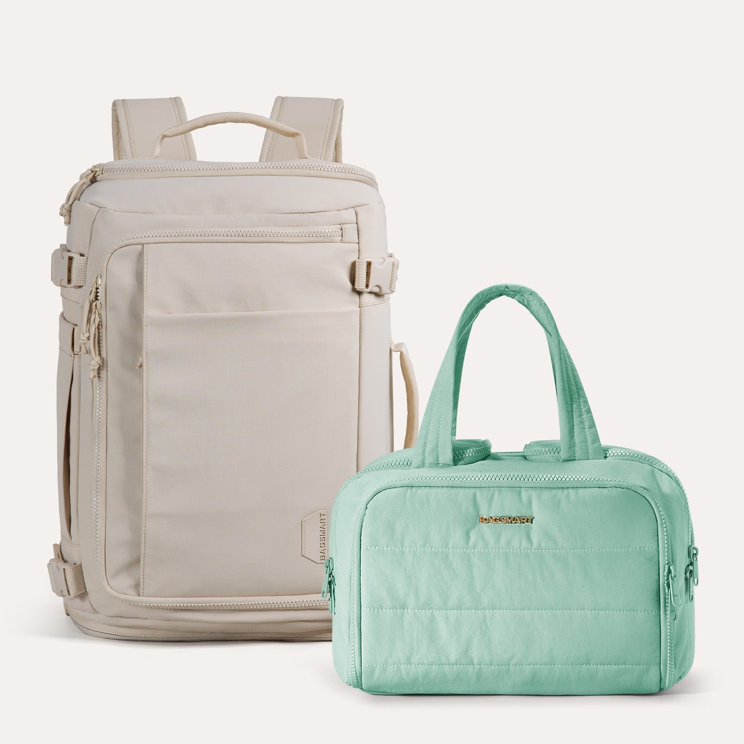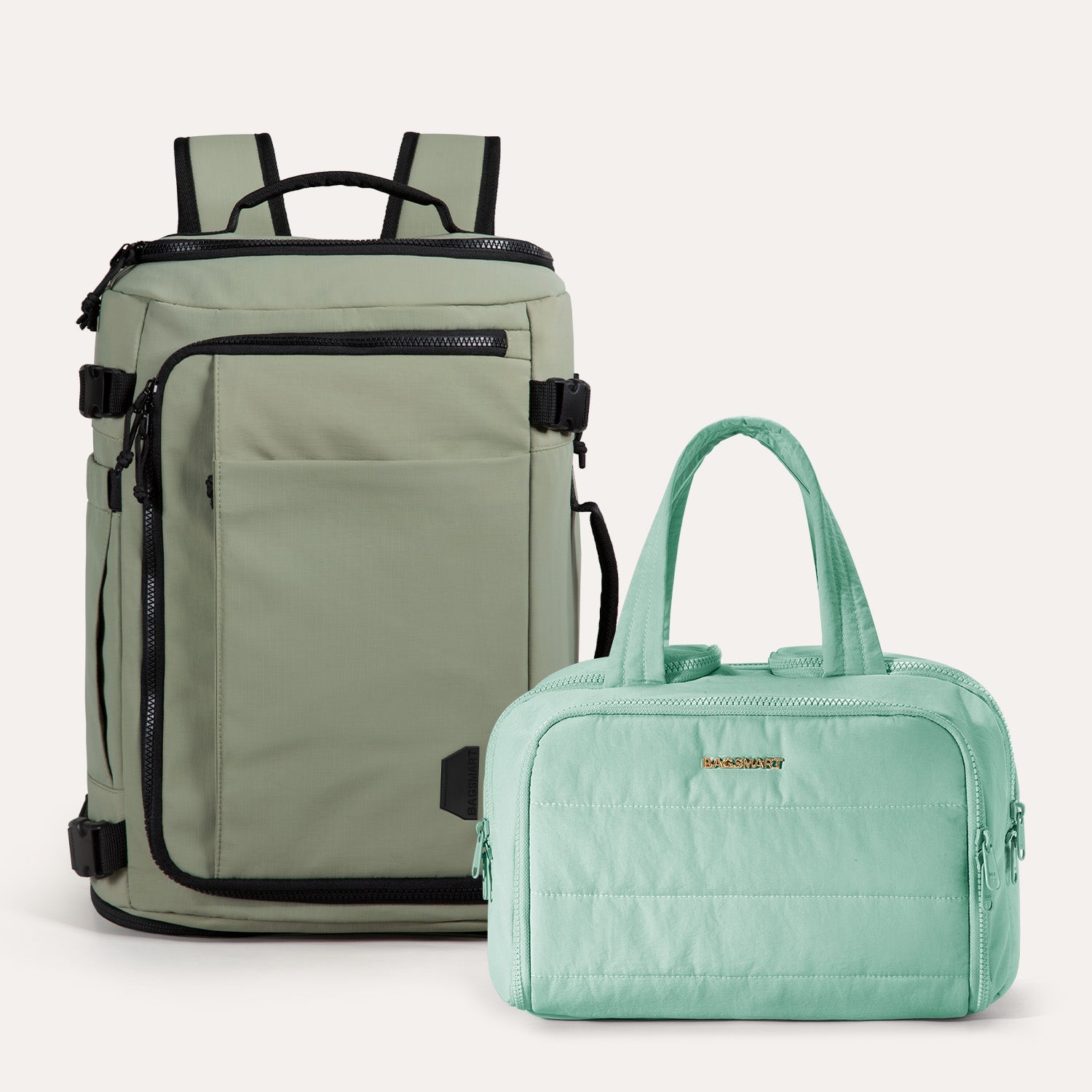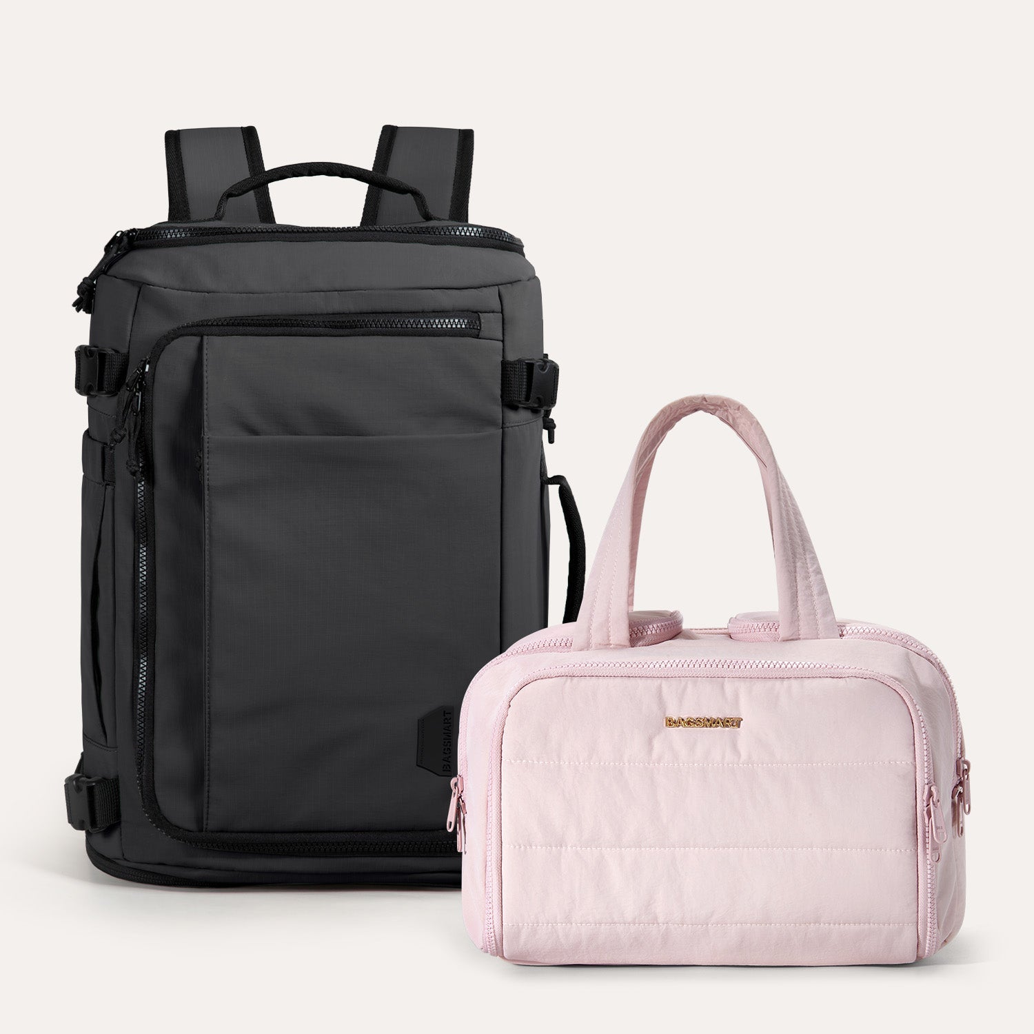 Our Blast & Spacesaver Set is designed to simplify and enhance your travel experience. This set includes the Blast Quick Access Carry On Travel Backpack and the Zora Spacesaver 4-in-1 Puffy Multi-Functional Toiletry Bag, crafted to meet all your travel needs.