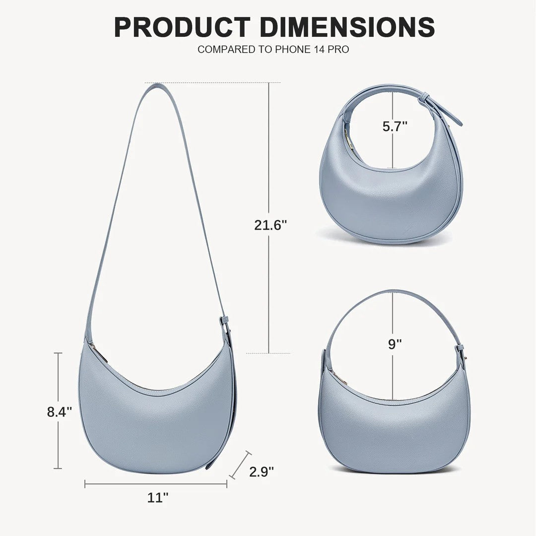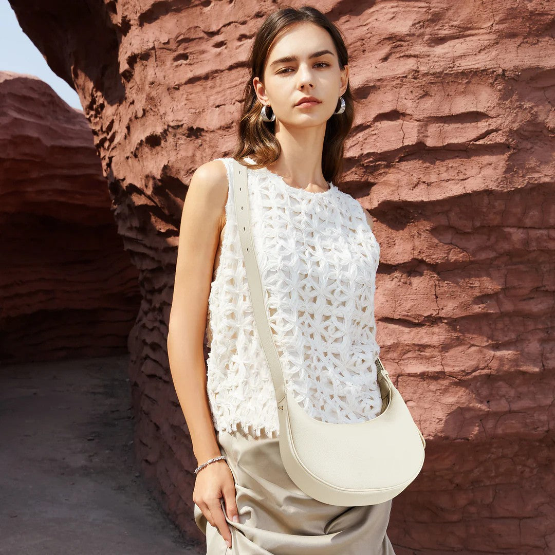 Drawing inspiration from the natural rhythms of sunset and moonrise, This crescent bag was born. The trendy crescent design makes it a modern fashion statement. Borne upon the ebb and flow of the tides, its allure endures.