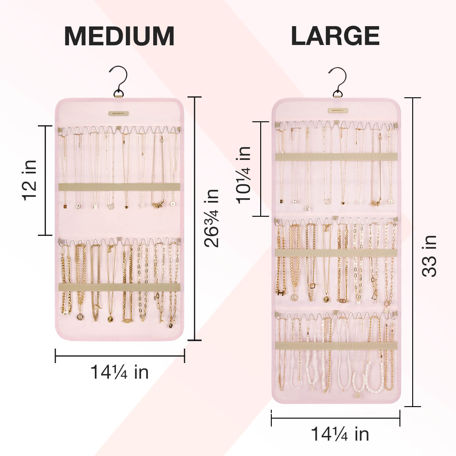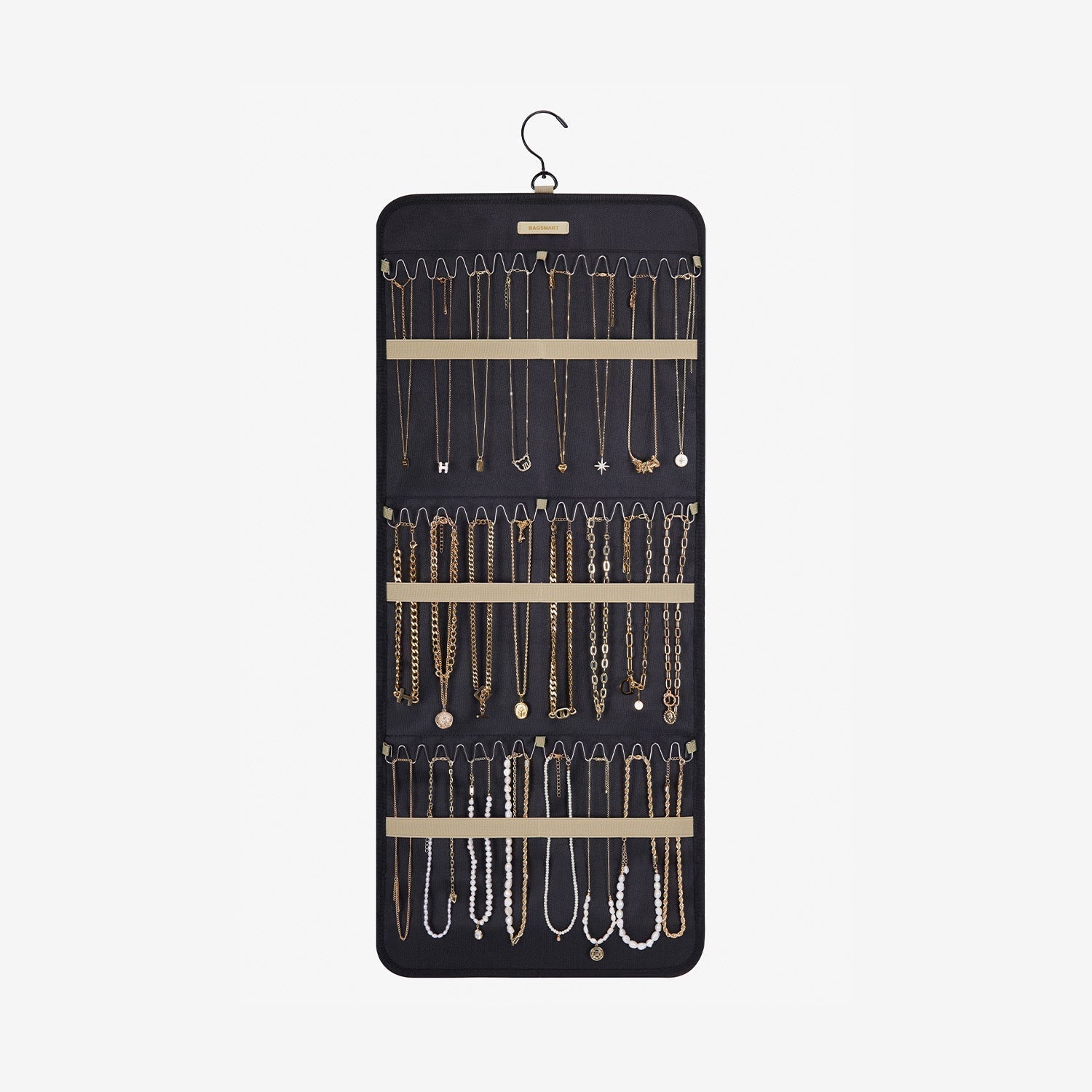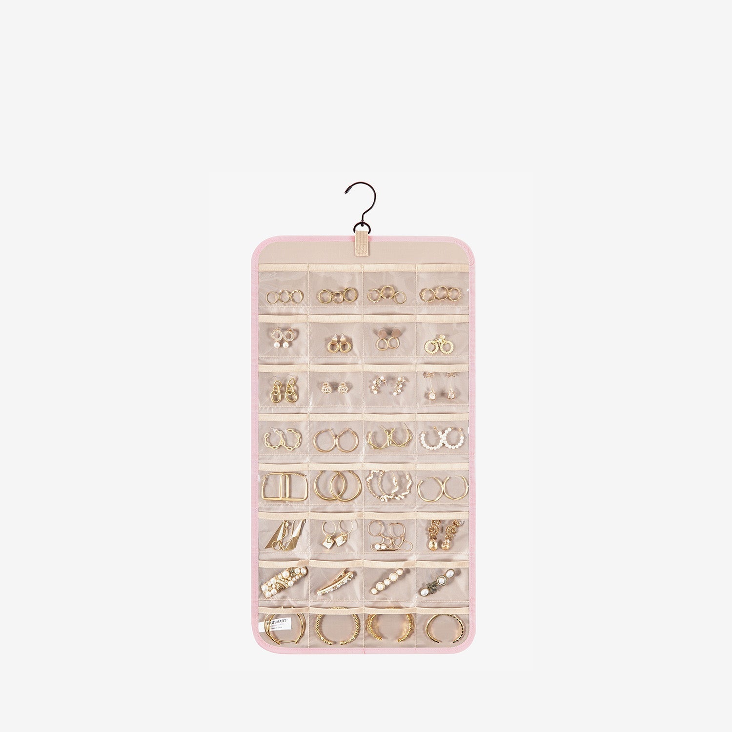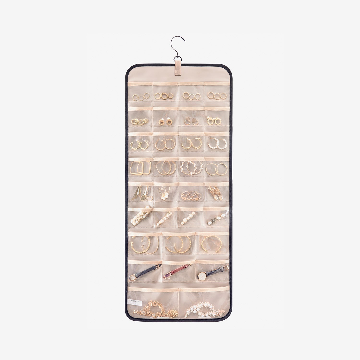 Thoughtfully designed to keep jewelry organized at home and while you travel, the Hanging Jewelry Organizer is an accessory every woman needs. Made from durable polyesters and PVC materials with a soft lining, this slim roll wallet is designed with plenty of storage compartments for your favorite pieces, including exclusive necklaces hooks so that necklaces won’t get tangled. Features transparent design, allowing users to find the jewelry organized efficiently.